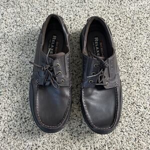 Skechers Men's Boat Shoes Size 12 Brown Leather Memory Foam Loafer Slip On