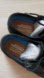 Stylish gray and black Skechers Oxfords. Comfortable and versatile design.