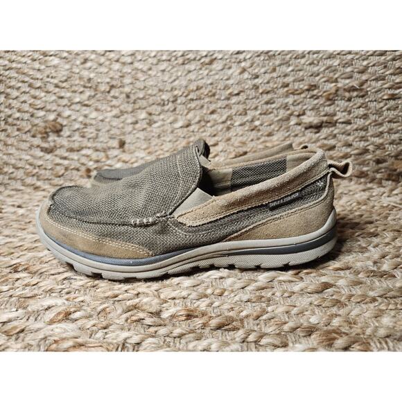 Skechers Mens Milford Fabric Leather Brown Slip On Shoes Casual Size 8.5