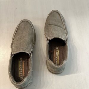 Skechers Men’s Relaxed Fit Memory Foam Khaki Canvas Slip On Shoes Sz 13 GUC