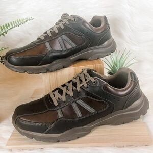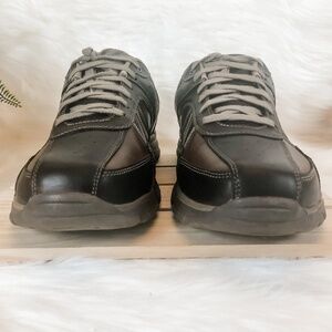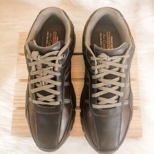 Skechers Men's Rovato Texon Sneaker. Smooth and distressed leather upper. Lace-up closure. Padded collar and tongue. Relaxed Fit® design for a roomier, more comfortable fit. Air-Cooled Memory Foam cushioned comfort insole. Flexible rubber traction sole. Great pre-owned condition with normal wear. Looks barely worn.