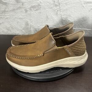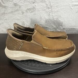 Skechers Mens Size 10 Hands Free Slip-Ins Relaxed Fit Parson Leather Brown