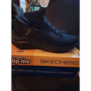 Introducing the Skechers Men's Slip-Ins Ultra Flex 3.0 Right Away Shoes in Black, #232452, size 13. These shoes are perfect for any occasion, whether it's for activewear or casual wear. They are designed with a slip-on closure for ease of use and a low-top shoe shaft style.