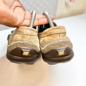 Skechers socks suck dragon brown driving loafers in good used condition.