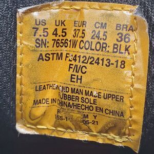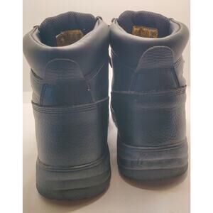 Unworn condition. These black Skechers work boots feature a steel toe, slip and oil resistant outsole, and ankle height shaft for maximum protection and comfort in any work environment. The lace-up closure allows for a secure fit, while the round toe shape and D-width shoe width provide ample space for your feet. Made with bullhide leather for durability, these boots come in a men's size 7.5 and have a UK shoe size of 4.5, EU shoe size of 37.5, and rubber outsole material. The boots also feature the Skechers brand, model number 76561W, and solid pattern. Perfect for any kind of job, these boots are a must-have for any hardworking individual.