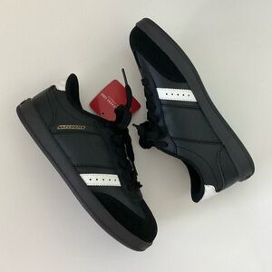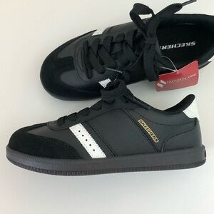 Brand new with tag sneakers pairing a throwback flair with Skechers comfort. A lace-up retro design with synthetic and suede overlay upper with stitching detail, a durable rubber outsole and a cushioned comfort insole. In color Black / White.