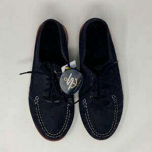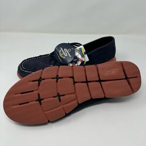 Skechers Navy and Rust Boat Shoes with Moccasin Stitching