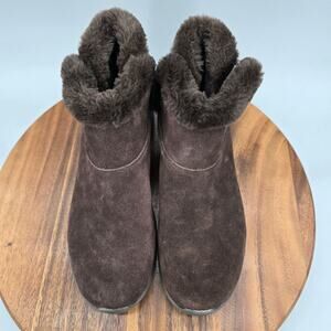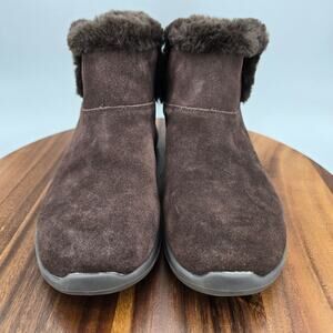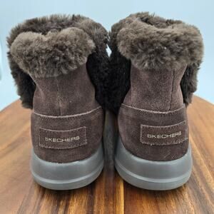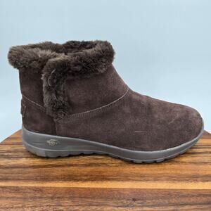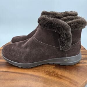 Skechers On The Go Joy Winter Boots Women's 10 Brown Leather Faux Fur Lined