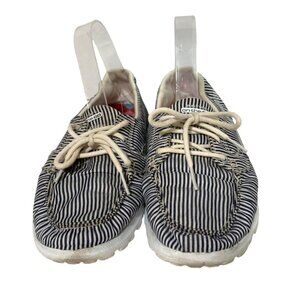 Skechers On The Go Womens Size 8.5 Lace Tie Up Sneakers Shoes Blue White Striped