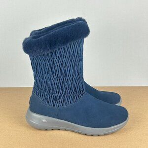 Skechers On the Go Joy Snow Bunny Winter Boots Womens 8.5 Blue Gray Pull On