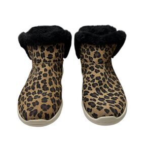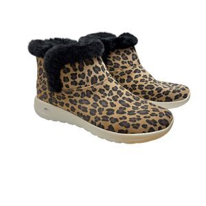 Skechers On-The-Go Joy Ankle Boots Suede Snow Kitty Leopard Walking Cozy EUC 9