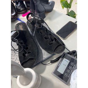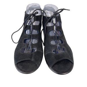 Skechers Parallel Lace-Up Sandal Womens 10 Peep Toe Black Suede Leather