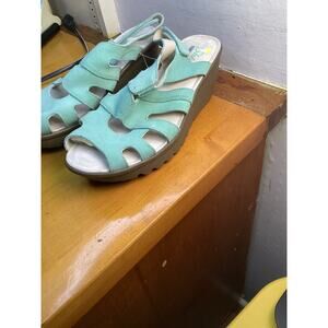 Skechers Parallel Stylin Mint Green Open Toe Wedge Sandals Size 7.5