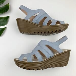 Skechers Parallel Stylin Wedge Sandals Blue Suede Slingback Comfort Women's 6.5