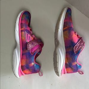 Step into style with these Skechers sneakers, featuring a lively pink color scheme and a comfortable low-top design. The swirling pattern on the upper adds a playful touch, while the bright pink laces and tongue enhance the vibrant look. Perfect for casual wear, these sneakers offer both comfort and a standout appearance.