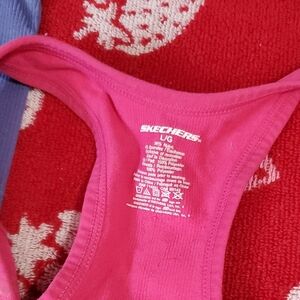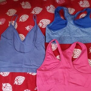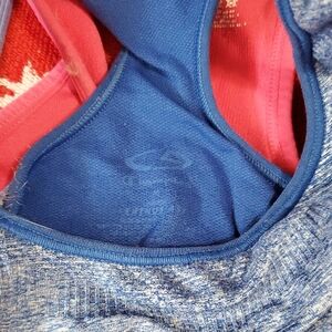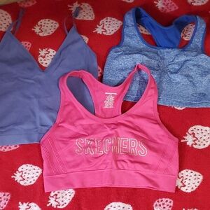 Skechers pink sports bra , champion blue sports bra and another top. Bras do not have padding.