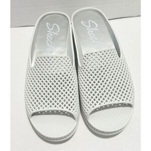 Skechers Plastic Waffle Design Open Toe Slip-On Slides Wedge Sandals White Sz 7