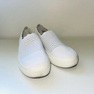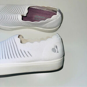 Skechers Poppy Breezy Street white mesh slip on sneakers. In excellent condition! Slip-on style. Rounded toes. Mesh upper with stretch knit design for a sock-style. Scallop detail around ankle. Air Cooled memory foam footbed. Flat form with 1” height. Breeze tech for a breathable wear. Solid white color. Size 7.5.