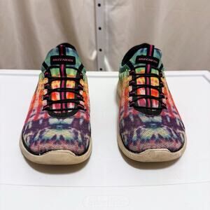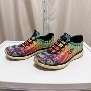 Skechers Rainbow TIE-DYE Memory Foam FLEX Womens Slip On Running Shoes Size 10
