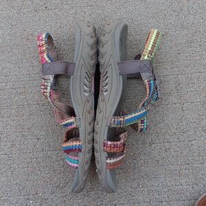 Skechers rasta colorful print strap sandals casual comfort walking shoes Women's size 7.5 Good condition