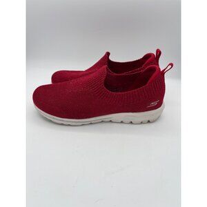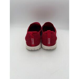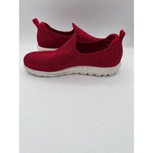 Vibrant red slip-on sneakers. Comfortable and stylish. Perfect for casual wear.
