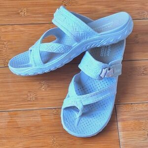 Skechers Reggae Foamies Tartan Charm Blush Pink Size 8 Sandal Slip-on