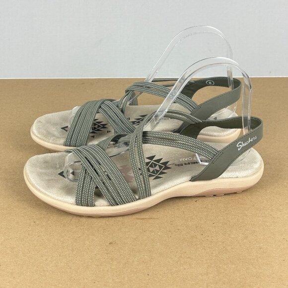 Skechers Reggae Slim Stretch Sandals Womens 8 Gray Taupe Comfort Casual