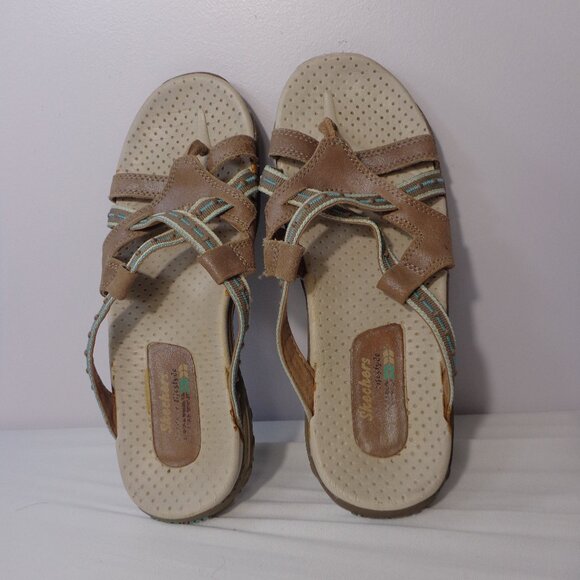 The Skechers Reggae Soundstage Leather Toe Post Slide Sandal 46720 in women's size 8 is a stylish and comfortable option for casual wear.