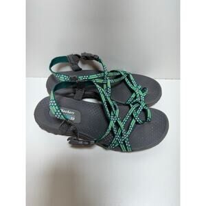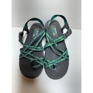 Skechers Reggae Strappy Outdoor Lifestyle Green Gray Toe Sandals Women’s Sz 9