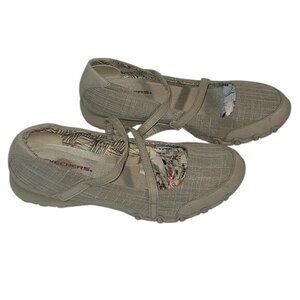 Skechers Relaxed Fit Mary Jane Shoes 9 Beige Fabric Comfort Sole beach walkng