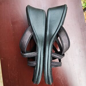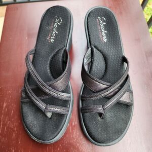 Skechers Rumblers Sandal Women 10 Black Happy Dayz Wedge Memory Foam Strapy