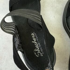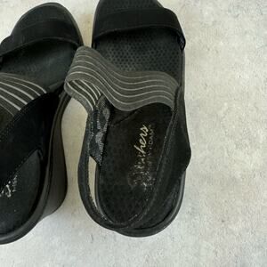 Skechers Rumblers Sci-Fi Wedge Sandal Black Memory Foam 38472 Women's Size 9