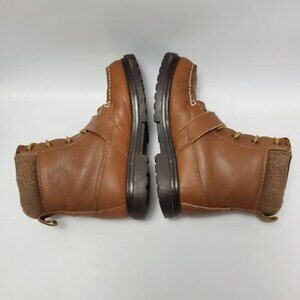 Skechers Boys Combat Boots Brown Leather Padded Collar Moc Toe Lace Up 1.5