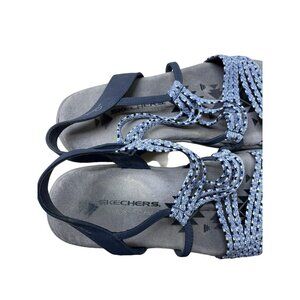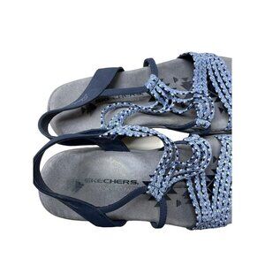 Skechers Sandals Women 8 Blue/Grey Reggae Memory Foam Slim Strappy Casual Ladies