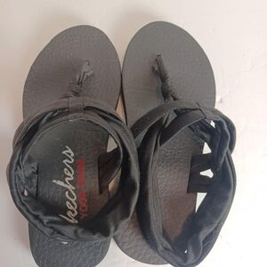 Skechers Sandals Womens 5 Yoga Foam Slingback Black ToePost Thong Flats‎ Comfort