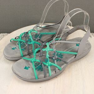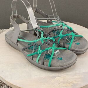 Skechers Sandals Womens 8 Gray Green Strappy Comfort Outdoor Casual