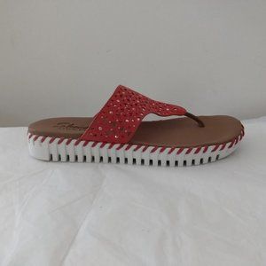 Women's US 9. New in box. Color is Coral. Microfiber upper with gold stud embellishment. Great option to flip flops. Ships with box.