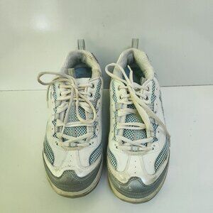 Skechers Shape Ups Jump Start Y2K Toning Walking Sneakers Size 7.5. White Silver Light Blue, Metallic Details, Lace Up, With Original Box. Good Pre-Owned Condition