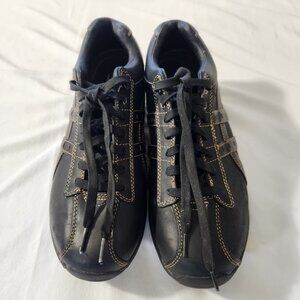 Skechers Shape Ups Men Size 11 Standard Black Leather Upper Low Top Lace Up Comfort Athletic Walking Shoes Style 66504 Breathable Casual Driving Gym Peeling in Tongue Area, Over All In Pre-Owned Good Condition Reasonable Offers Welcome