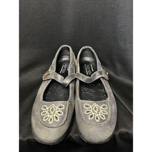 Skechers Shape Ups Sz 10 Gray-Black Suede Leather Embroidered Mary Jane Shoe 99Q