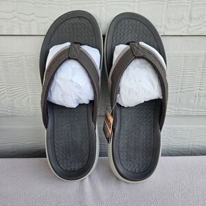 Skechers Silva Falco Thong Flip Flop Sandal Men 12 Brown Relaxed Fit Vegan. Brand new in box. Measures 11 1/2 inches heel to toe. Smoke-free.