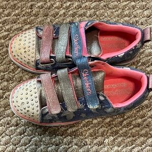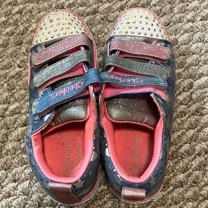 Skechers Size 2 Girls Kids' Sparkly Blue and Pink Sneakers Preloved