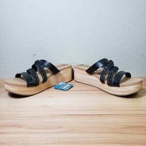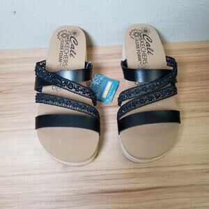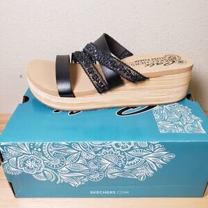 Skechers Size 9.5 Summers Strappy Platform Slide Sandal Black Chunky Comfort NWT