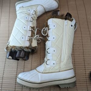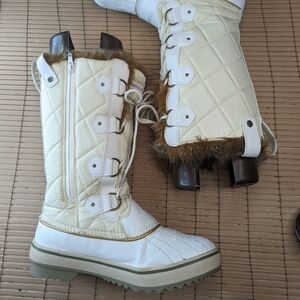 Skechers Skech-tex Waterproof Womens white Boots Size 8.5M faux coyote fur lined. Worn one time.