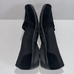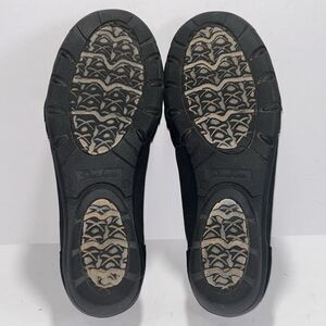 Skechers Slip On Loafer Relaxed Fit Women 7.5 Memory Foam Leather Trim Black EUC