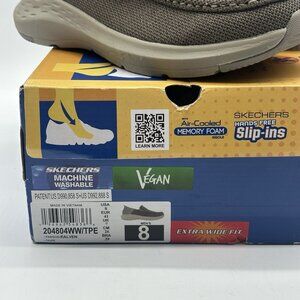 This listing is for a new pair of Skechers Slip-Ins Parson Ralven Moc Toe Casual Sneakers in a men's size 8 extra wide, model #204804WW. This pair of shoes are in new condition with some minor outer box wear. Please see all listing photos, as this pair of shoes are for sale in as/is new condition.
