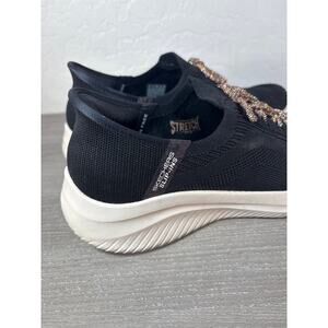 Skechers Slip-Ins Shoes Wms 9 Ultra Flex 3.0 Diamond Dreamer Black Gold Rose Bow