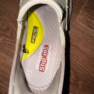 Classic laidback style and effortless comfort meet in Skechers Hands Free Slip-ins® Relaxed Fit®: Pollard - Reed. Designed with our Heel Pillow®, this laceless slip-on features a mesh knit upper with gore panels, a charcoal-infused Skechers Air-Cooled Memory Foam® insole, Memory Arch™ for added support, and a durable anti-slip Goodyear® Rubber Outsole.