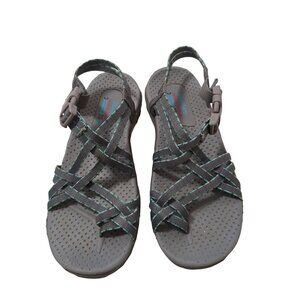 Skechers Sport Sandal Womens 6 Gray Strappy Toe Thong Reggae Fun Banter Gorpcore