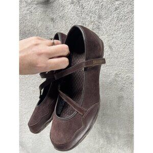Skechers Step Up Bikers Mary Jane Flats Women’s 6 Dark Brown Leather Sneakers